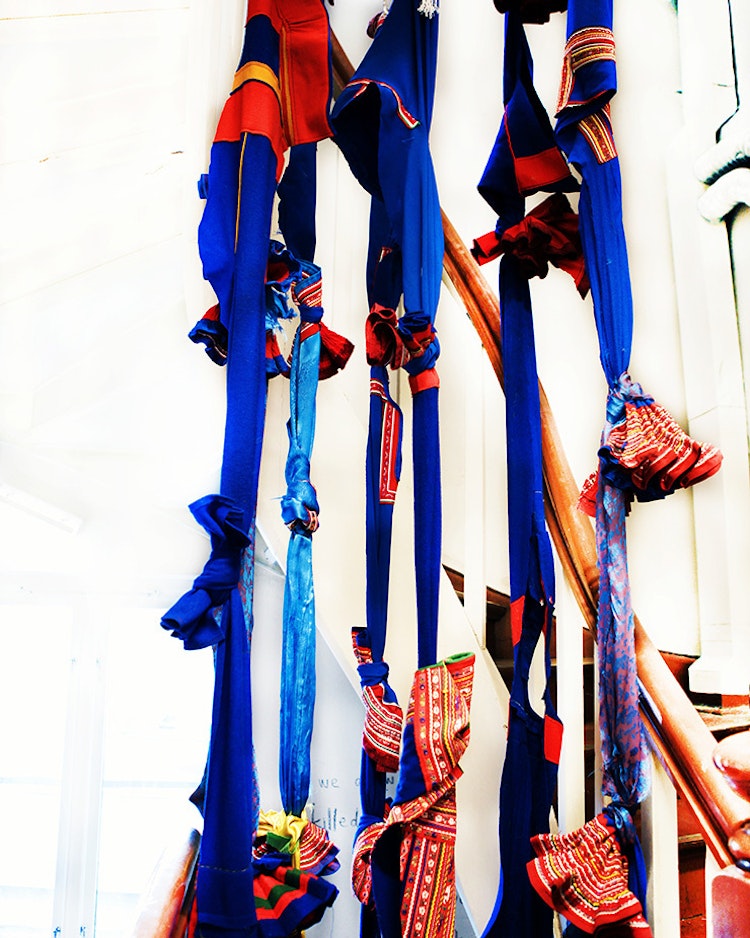 Yes, macro versus micro. I'm super interested in nomadism, but I also wonder, when you get to macro level, what is nomadism? Because you're looking at such a big picture ... is the idea of space relevant anymore? Talking to people about the idea of being nomadic, from a colonial sense, implies time and space. What I've learned from working with you, and from working with other groups of people, is how we consider time and space. It needs to change as it all doesn’t move in one direction at the same speed. To get on that level, then, how far really is Chile from Norway? When you zoom out and you find those comparisons and those parallels, and you're talking about making these knots with garments. Garments: with things that are worn, which put the body back in, which, I would make the argument, has the potential for being called jewelry.. So, you may have been making jewelry before we were working together.